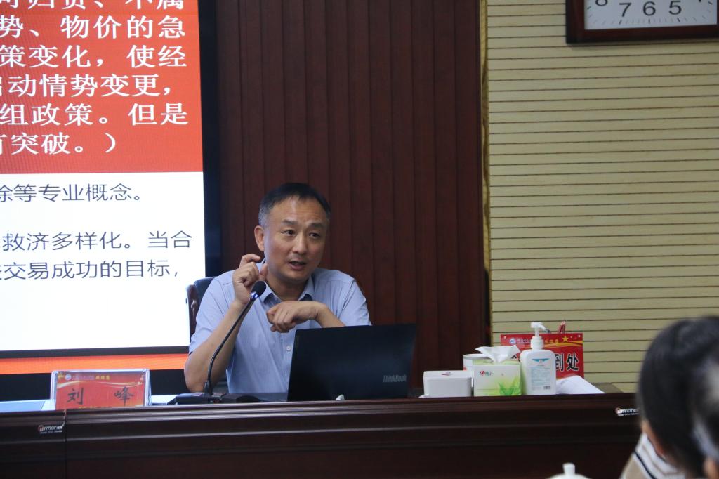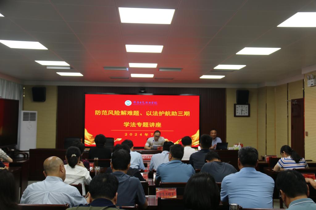 为全面贯彻党的二十大精神和习近平法治思想,深入落实习近平总书记全面依法治国新理念新思想新战略,进一步提升我院领导干部的法治意识,增强法律风险防范能力,7月2日,我院邀请学院法律顾问刘峰律师到校开展“防范风险解难题、以法护航助三期”专题讲座。讲座由副院长贾楠主持。