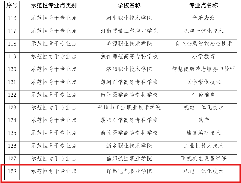 8月9日,河南省教育厅下发了关于公布2024年河南省职业教育示范性专业点立项建设项目名单的通知。许昌市共有两个省级示范性骨干专业成功申报,我院机电一体化技术专业是其中之一。