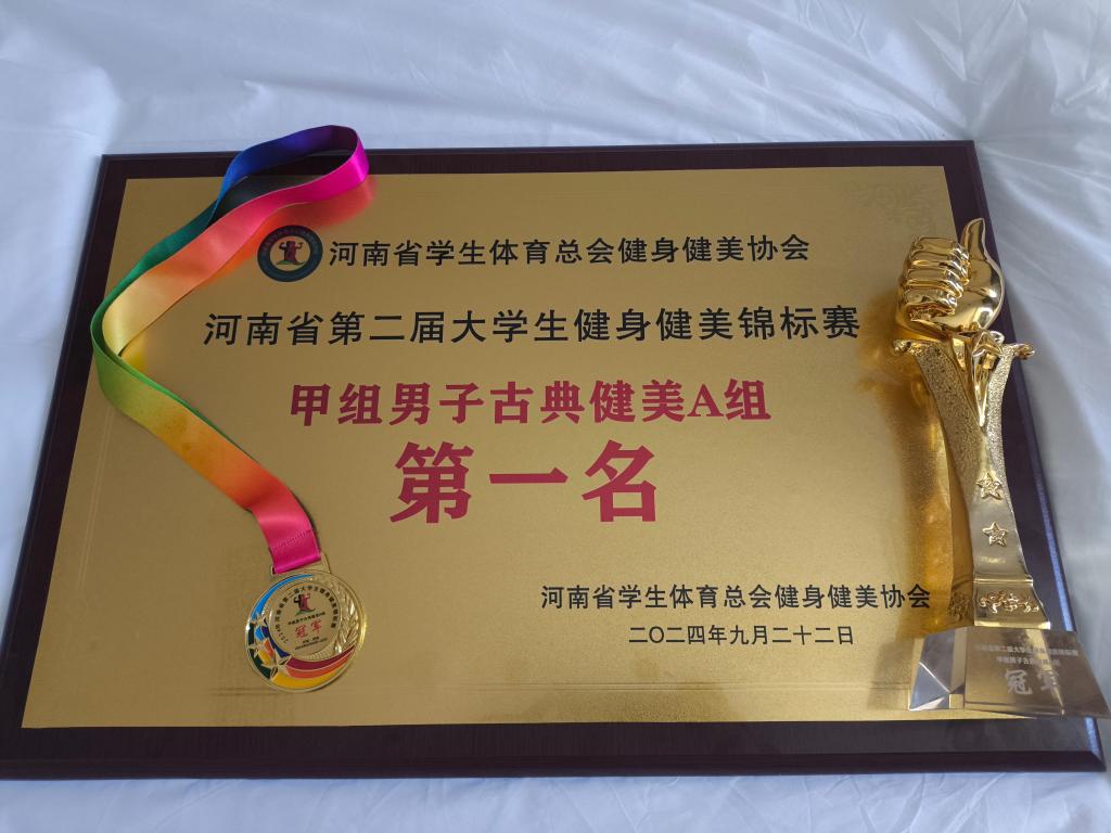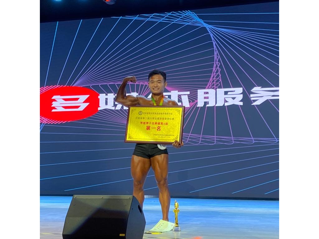 9月20日-22日由河南省学生体育总会主办的“第二届河南省大学生健身健美锦标赛”在信阳航空职业学院举行。经过为期两天的激烈竞逐,我院2022级信息工程学院学生靳明基荣获甲组男子古典健美A组第一名,并在本、专科全场战中再次捧得桂冠,荣获本届比赛男子古典健美“双第一”!