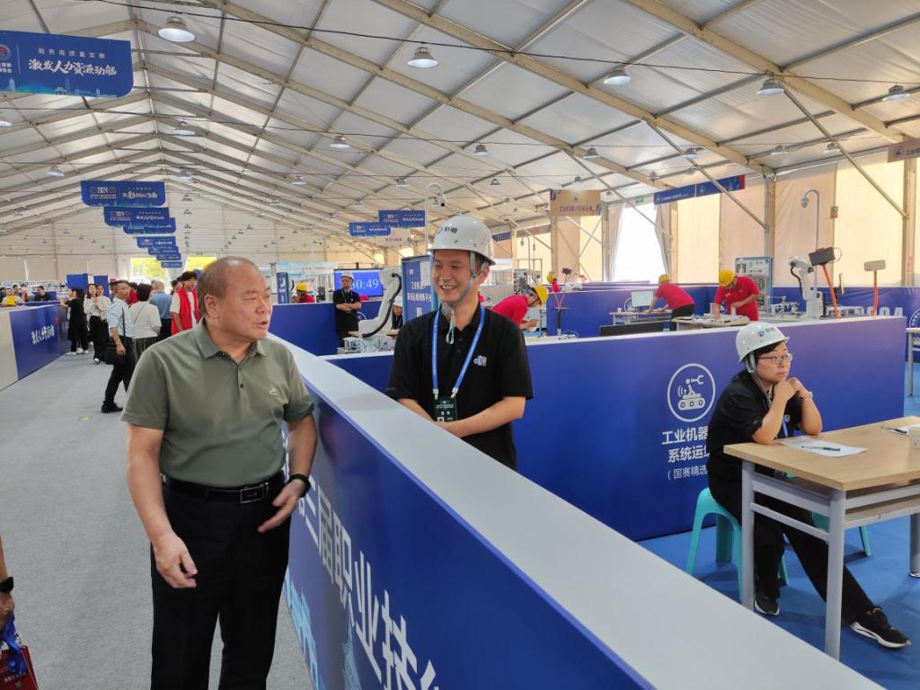 9月25日,张俊才受邀参加了河南省第三届职业技能大赛开幕式,并带队到开封市民广场、河南化工技师学院、河南医药健康技师学院、开封技师学院等赛场现场观摩我院参赛师生的比赛,与指导教师进行亲切交流,为我院参赛师生加油!