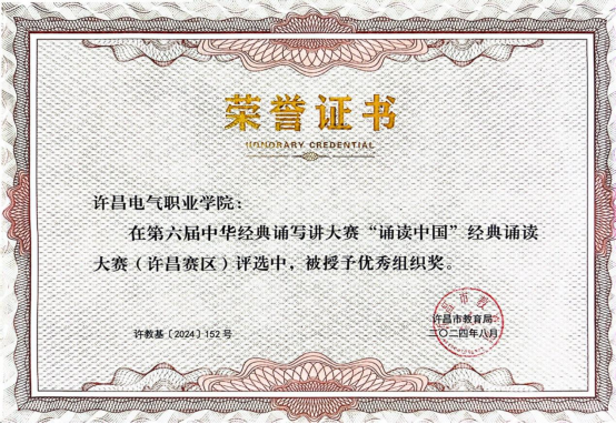 本届中华经典诵写讲大赛以“典耀中华 赓续文脉”为主题,分为“诵读中国”经典诵读、“诗教中国”诗词讲解、“笔墨中国”汉字书写、“印记中国”师生篆刻等四个赛项,我校积极参与了其中的经典诵读赛项。为备战比赛,我校开展了校内选拔和辅导活动,相关二级学院给予大力支持,通过作品打磨、专家辅导、赛事模拟等多种方式,深度挖掘并充分培养参赛选手的优势与特长,以全力以赴的姿态投入到市赛、省赛乃至国赛的备赛进程之中,最终斩获优异成绩。
