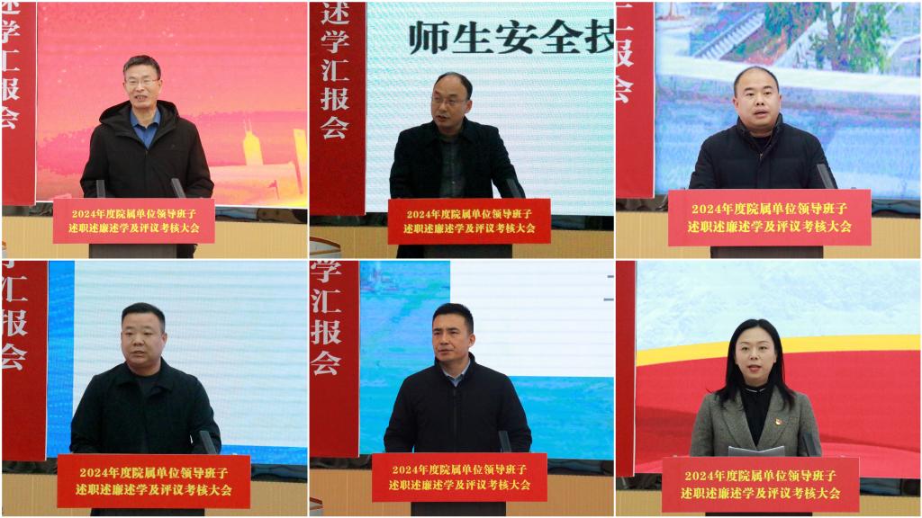 为进一步统一思想、明确方向、凝聚共识,全面回顾与总结过去一年各单位取得的显著成绩,确保新的一年以更饱满的热情、更加扎实的作风、更加高效的行动,推动各项工作再上新台阶,1月7日,学院召开2024年度院属单位领导班子述职述廉述学及评议考核大会。学院全体领导班子成员、各部门负责同志、部分科级以上干部、教师代表参与考核评议。院党委副书记张明慧主持会议。