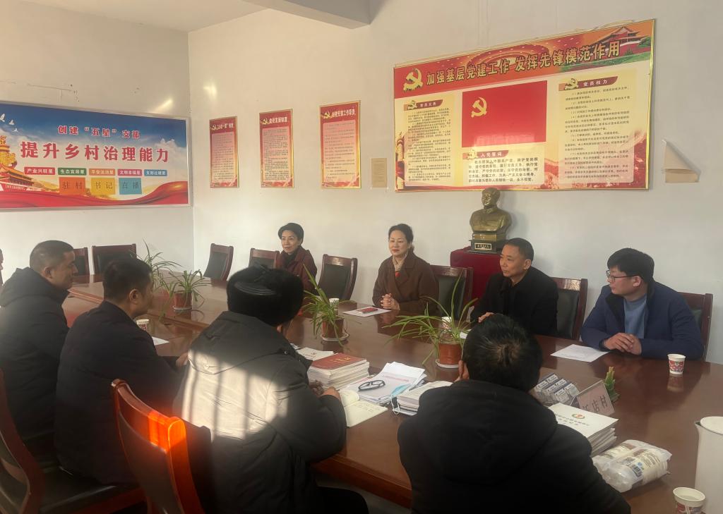 在汪店村召开的驻村干部座谈会上,张明慧认真听取了驻村工作汇报,对乡村振兴帮扶工作给予肯定,认为2024年乡村振兴帮扶工作“党建引领有新起色、风险防控有新措施、产业振兴有新突破、基础设施有新改善、基层治理有新机制”。同时就乡村产业发展现状与姜庄乡党委副书记、乡长郑士广、汪店村“两委”进行了深入的交流,最后张明慧强调驻村第一书记是巩固拓展脱贫攻坚成果同乡村振兴有效衔接的中坚力量,要求驻村干部沉在村里、干在一线,发挥作用,把汪店村当成自己家,珍惜剩余的驻村时光,做一名让村民满意的驻村干部。