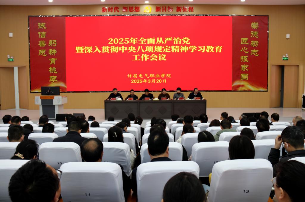 会上,工会主席张贵军传达了中央办公厅印发的《关于在全党开展深入贯彻中央八项规定精神学习教育的通知》和中央、省委、市委会议精神;副院长朱东煜宣读了《关于在全院党员中开展深入贯彻中央八项规定精神学习教育的工作方案》;纪委书记张晓华宣读了《中共许昌电气职业学院纪律检查委员会2025年工作要点》。