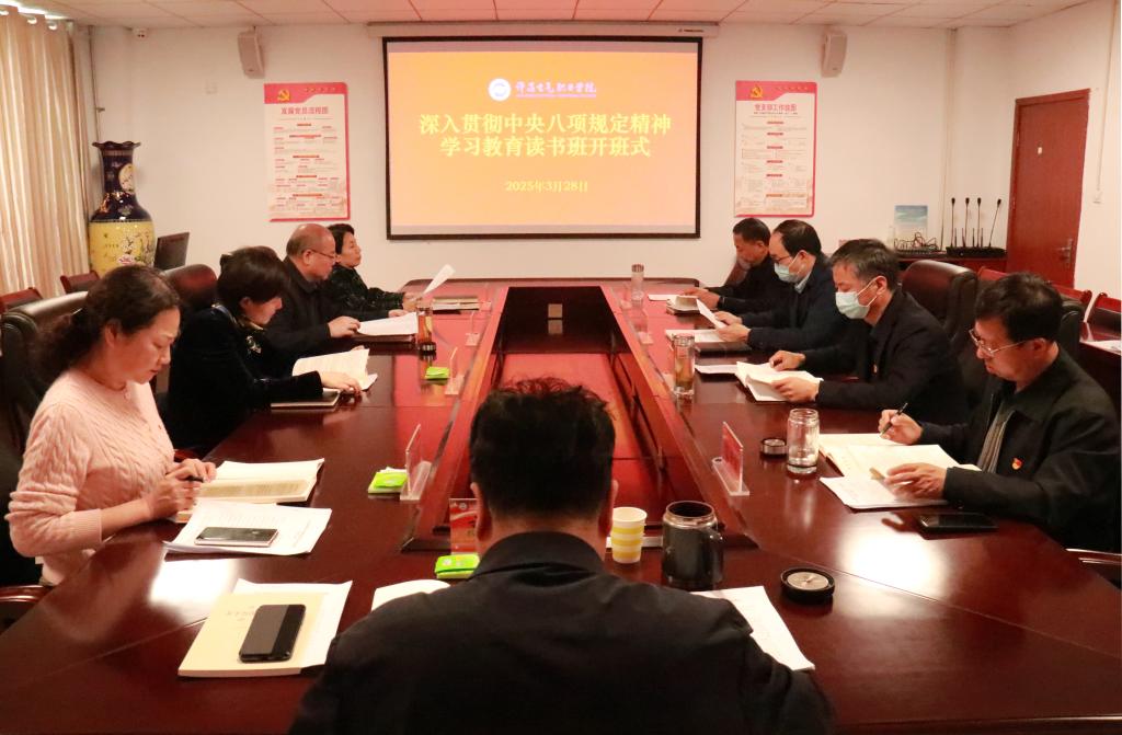 会议强调,要以读书班的高质量开展,确保理论学习有新收获、党性修养有新加强、作风建设有新提升,把落实中央八项规定精神作为政治必修课、能力提升课、作风实践课,以“咬定青山不放松”的韧劲、“不破楼兰终不还”的拼劲,共同谱写学院全面从严治党新篇章,以风清气正的政治生态和攻坚克难的进取姿态,为学院内涵式高质量发展保驾护航。
