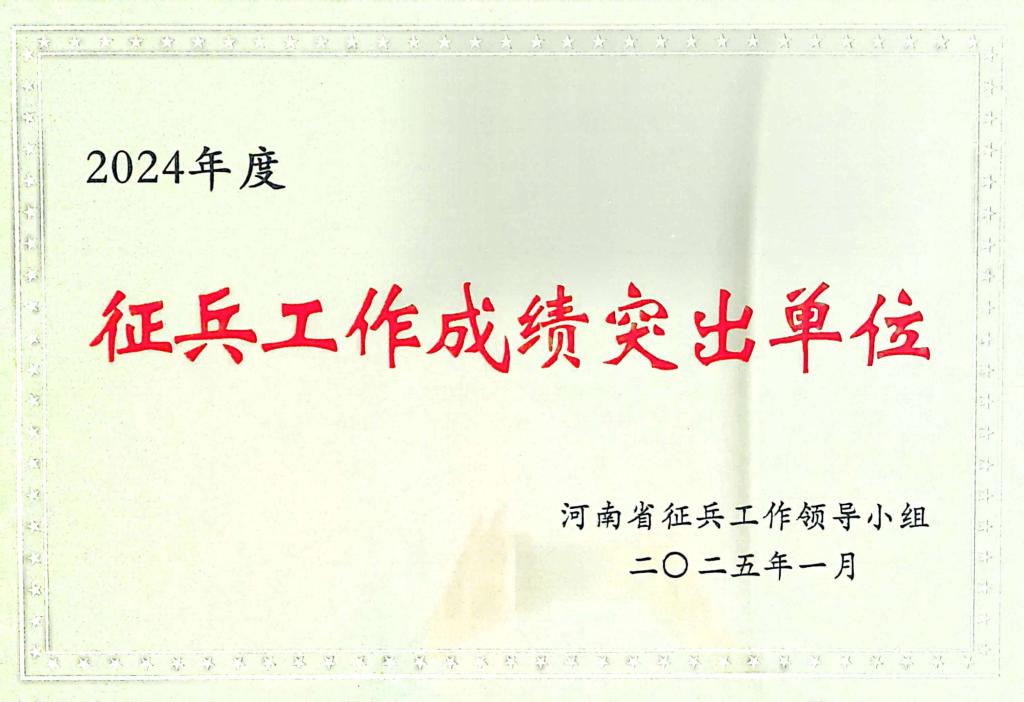 近日,河南省征兵领导小组下发《关于表扬2024年河南省征兵工作成绩突出单位和个人的通报》(豫征〔2025〕1号),我院被表彰为河南省“征兵工作成绩突出单位”,此次全省共有20所普通高等院校受到表彰。