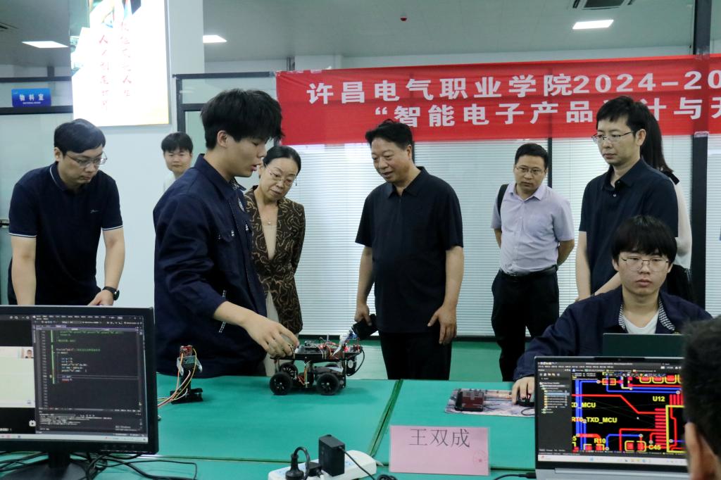 为深入贯彻落实党的二十大和二十届三中全会精神,进一步深化我市产教融合工作,5月30日上午,许昌市人大常委会副主任牛艳伟,市人大教科文卫委员会主任委员宋德益,市人大教科文卫委员会副主任委员党俊红,中原科技学院副校长李淮嵩,市教育局党组成员、副局长李瑛,市教育局职成教科科长李新明一行6人莅临我校,就产教融合、校企合作工作开展专题调研。院长高远浩、副院长贾楠及相关部门负责人陪同调研。
