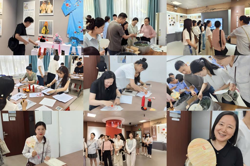 最后,学生志愿者带领并协助老师们在漆扇拓印体验室进行现场制作体验。