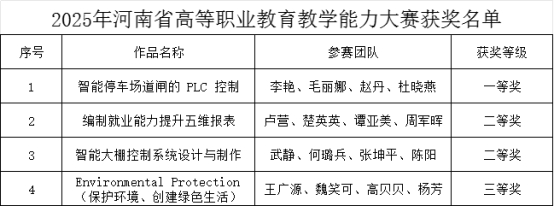 近日,2025年河南省高等职业教育教学能力大赛获奖名单公布。我院教师团队在本次大赛共取得1个省级一等奖、2个省级二等奖、1个省级三等奖的优异成绩。