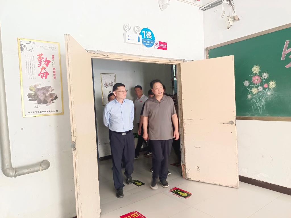 为确保新学期开学工作平稳有序,全面筑牢校园安全防线,9月2日上午午,省教育厅党组成员、副厅长、省委教育工委委员(兼)刘林亚率督导组一行莅临我院,对学院秋季学期开学准备工作进行实地检查和督导,省教育厅教师处处长李松原等领导参加督导。学院党委副书记、院长高远浩,工会主席张贵军,副院长朱东煜、贾楠,许昌市教育局党组书记、局长刘庆及学院相关职能部门负责人陪同检查。