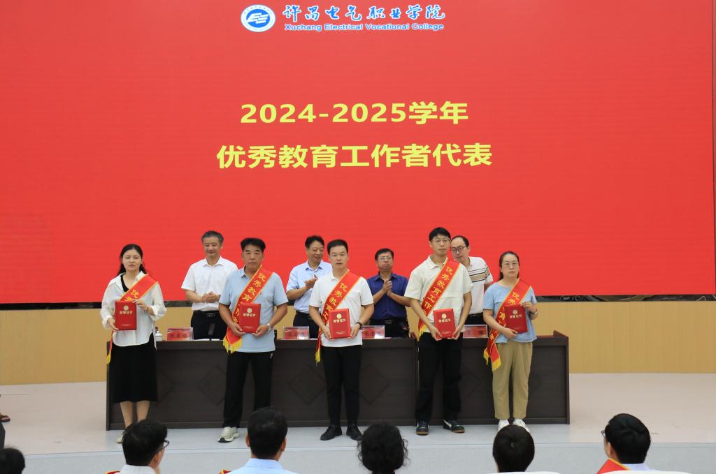 会上,贾楠宣读了《许昌电气职业学院关于表扬河南省第二十届大学生科技文化艺术活动获奖教师的决定》、《许昌电气职业学院关于表彰2024—2025学年优秀辅导员(班主任)的决定》、《许昌电气职业学院关于表彰2025年度先进个人的决定》。朱东煜宣读了《许昌电气职业学院关于表彰第十七届“挑战杯”河南省大学生课外学术科技作品竞赛获奖教师的决定》、《许昌电气职业学院关于表彰2024—2025学年职业技能竞赛获奖教师的决定》、《许昌电气职业学院关于表彰2024—2025学年教学竞赛获奖教师的决定》。张贵军宣读了《许昌电气职业学院关于表扬2024年度考核优秀单位的通报》。