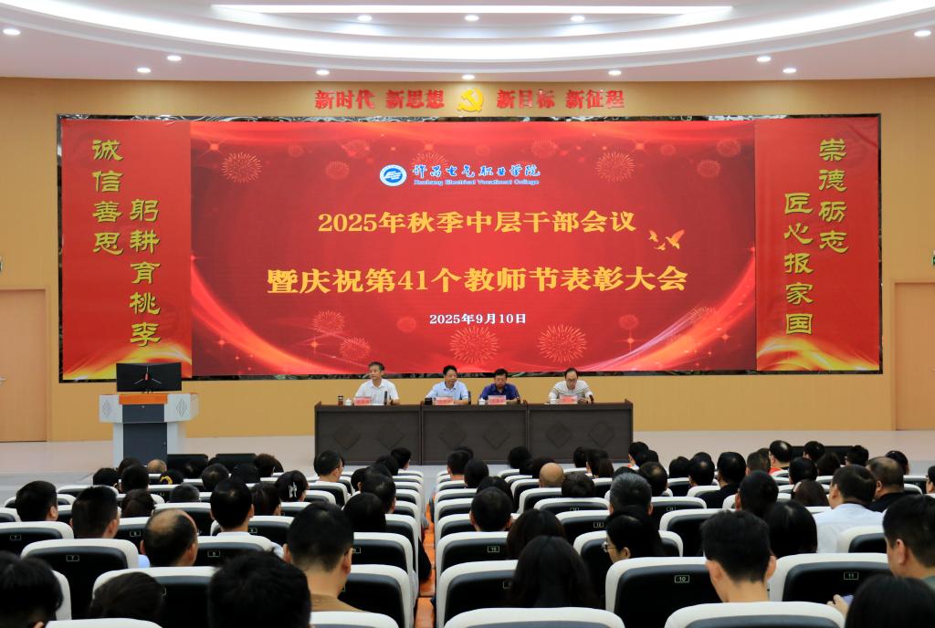 9月10日上午,学院在VR思政会议中心举行2025年秋季中层干部会议暨庆祝第41个教师节表彰大会。院党委副书记、院长高远浩,副院长朱东煜、贾楠出席会议,学院副科级及以上全体干部,以及受表彰的先进集体及优秀教师代表参加会议。会议由工会主席张贵军主持。