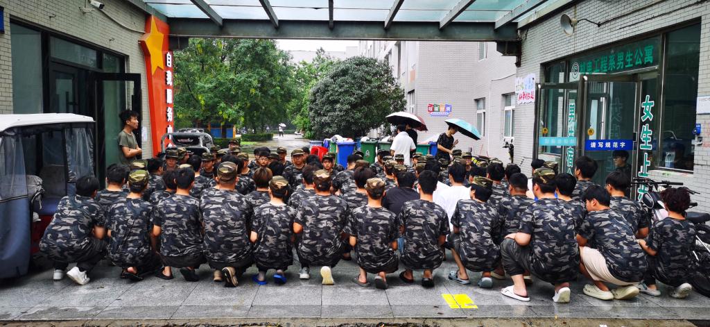 高远浩首先来到学生宿舍区域,仔细查看了宿舍周边的排水情况,确保雨水能够及时排出,避免出现积水倒灌宿舍的情况。在学生公寓C连廊下,看到一部分新生在教官的指导下练习内务、交流军事知识,高远浩亲切叮嘱同学们在暴雨天气务必注意安全,尽量减少不必要的外出,遇到突发状况及时与辅导员、值班老师或宿管人员联系。