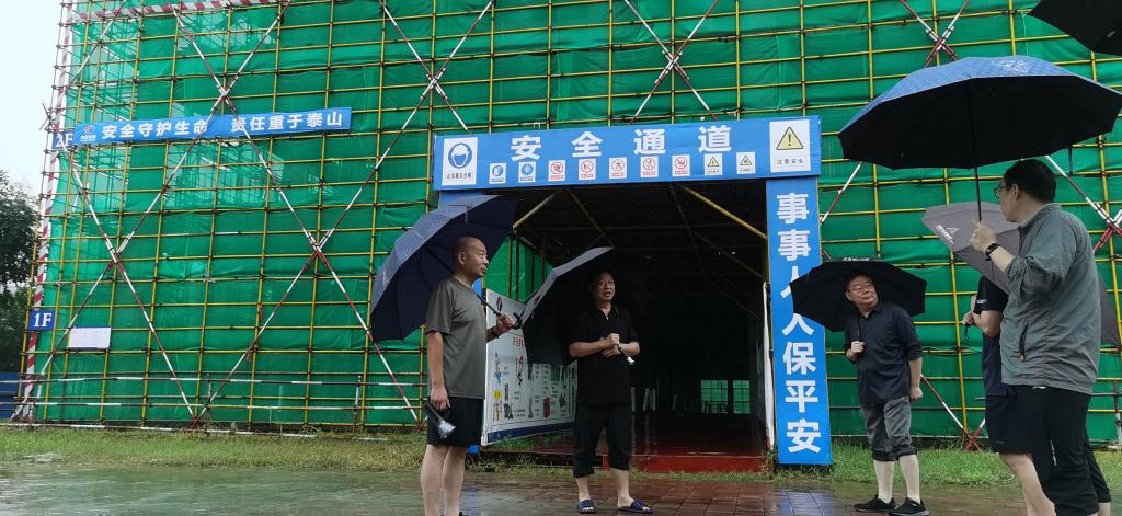 高远浩一行在学院产教融合实训基地大楼施工现场,检查工地建设进度和防汛工作,听取了项目进展情况汇报,要求学院项目指挥部和施工单位项目部要严格按照施工合同和项目建设标准,保质保量推进工程进度,同时做好应对恶劣天气的防护措施,进一步加强施工现场的安全管理,杜绝安全事故发生。