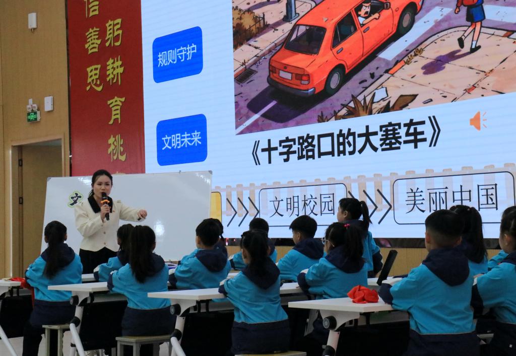 许昌市建安区龙泉街小学李莹莹老师以《乘规则列车 赴文明未来》为题,通过创设生动情境,引导学生理解规则意识,课堂设计贴近生活,兼具启蒙性与趣味性。