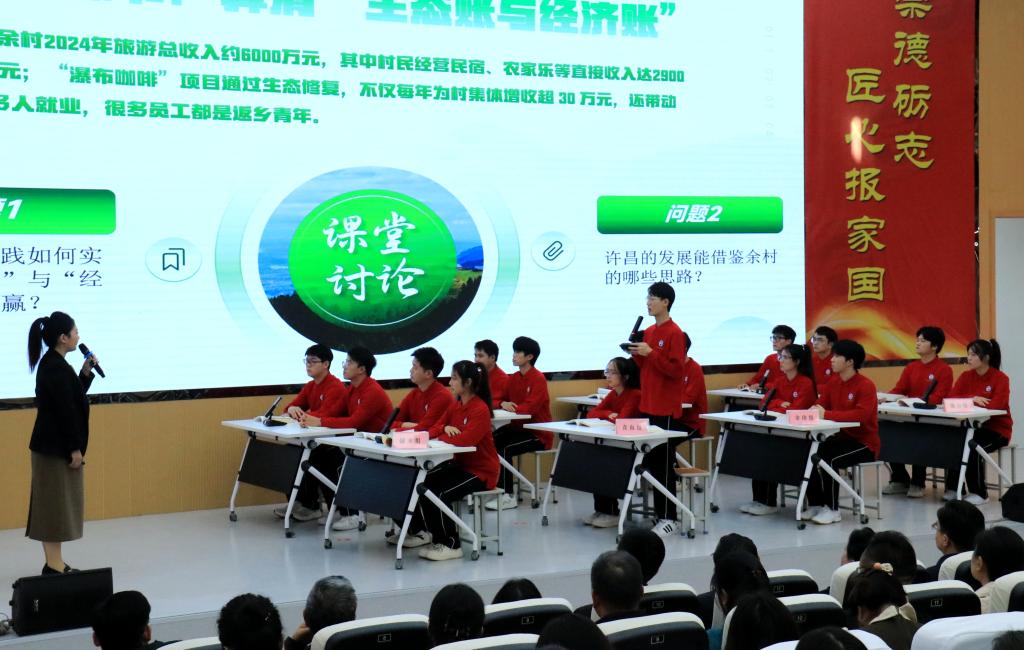 许昌电气职业学院教师马唱唱以《生态优先与绿色发展——“两山”理念引领美丽中国建设》为题,系统解读了“绿水青山就是金山银山”理念的时代内涵与实践路径,激发了广大师生投身生态文明建设的责任意识与使命担当。