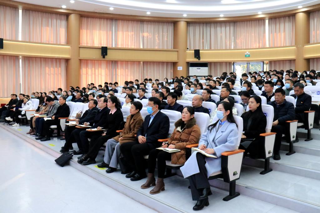 为全面贯彻落实党的二十届四中全会精神,凝聚共识、擘画蓝图,推动学院事业高质量发展,12月18日下午,学院在思政报告厅召开学习贯彻党的二十届四中全会精神宣讲会暨党委理论学习中心组(扩大)学习会。市委宣讲团成员,许昌电气职业学院党委副书记、院长高远浩作宣讲报告。学院班子领导、院属各单位党政负责同志、各党支部书记及各二级学院师生代表参加会议。会议由院工会主席张贵军主持。