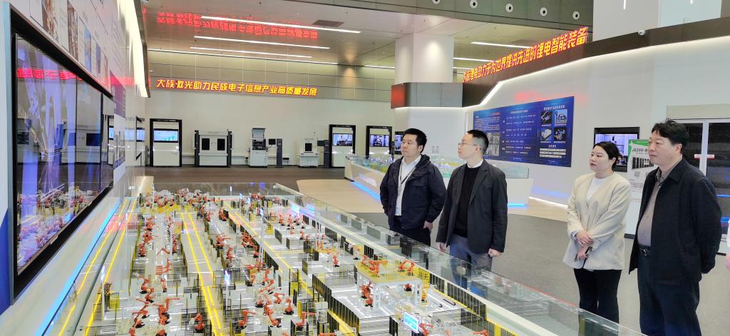 在深圳调研期间,高远浩一行先后走进广东华沿机器人股份有限公司、大族激光集团等行业标杆企业。在广东华沿机器人有限公司,调研团队深入创新展厅与智能生产车间,现场观摩了传感器PCBA板柔性化上下料、装配系统的实操演示。该系统依托精准力控算法与视觉识别技术,可自主完成工位移动、零件识别、抓取装配等全流程作业,兼容70余种规格工件的多品种共线生产,其高效柔性的生产模式给调研团队留下深刻印象。“这种深度契合产业需求的技术创新,正是职业教育人才培养的核心导向。”高远浩在观摩中强调,学院将积极借鉴企业技术标准,优化相关专业课程体系。