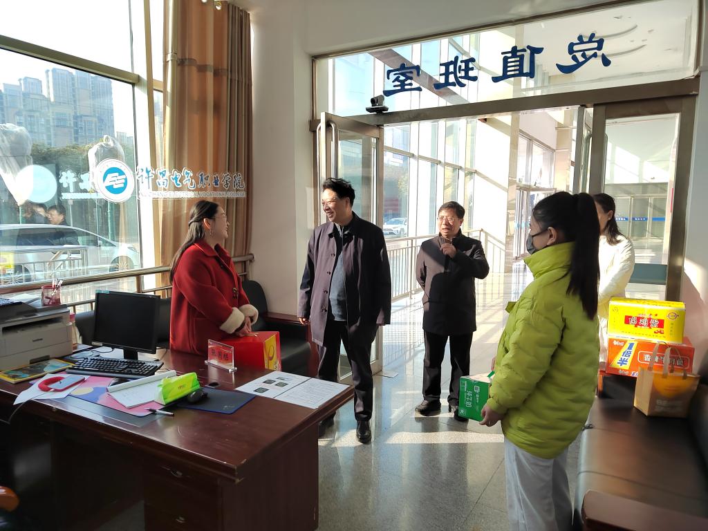 新春伊始,暖意融融。大年初一上午,院党委副书记、院长高远浩,工会主席张贵军一行深入校园一线,亲切看望慰问春节期间坚守岗位的值班工作人员,向大家致以诚挚的节日问候和新春祝福。当日带班领导党委委员、宣传部部长张国栋,保卫处处长杨绍业及行政办公室相关人员陪同。