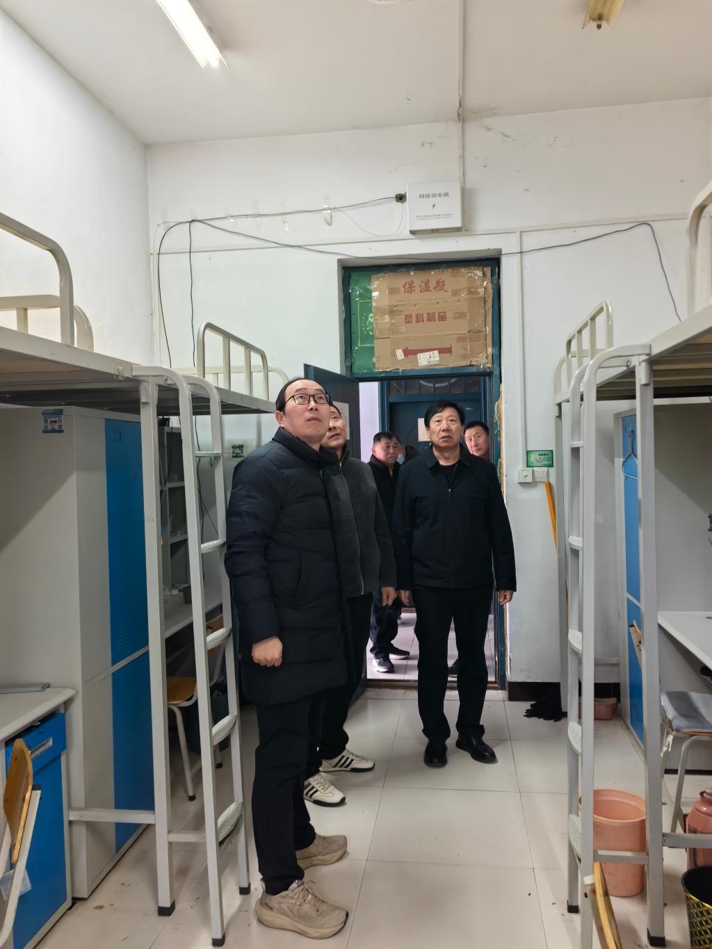在各部门自查基础上,副院长贾楠带领保卫处专项检查小组,于3月7日分组对全院重点区域开展拉网式专项检查。检查组先后深入实训楼、学生宿舍、食堂、教学楼、图书馆等人员密集场所,对消防设施配备与维保、供电线路与设施运行、宿舍安全管理、食堂燃气及食品卫生、实训设备安全防护等关键环节逐项核查,细致排查潜在安全风险,对发现的问题现场登记、明确整改责任与时限,确保隐患整改闭环管理、动态清零。