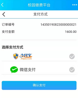 通过支付页面选择微信支付或者支付宝支付,支付成功即可完成缴费操作