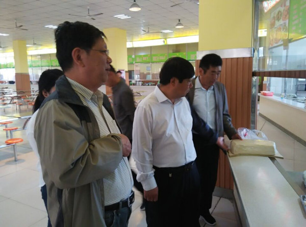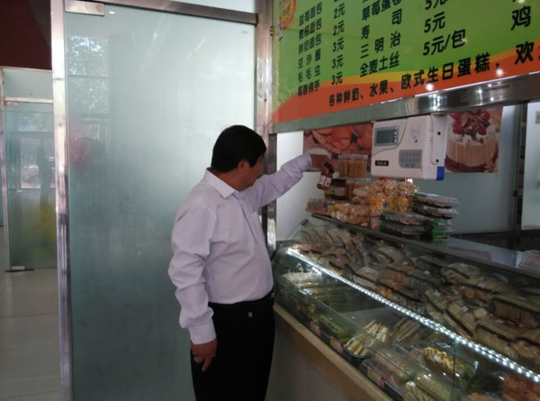 在学院餐厅,检查组一行对食堂工作场所卫生状况、食品的卫生等进行了严格检查,先后检查了操作间、留样柜、消毒设施等地方,并与食堂工作人员交谈,详细询问、了解食堂各类食品及原料的定点采购情况、货物存储情况、及制作售卖各个环节。