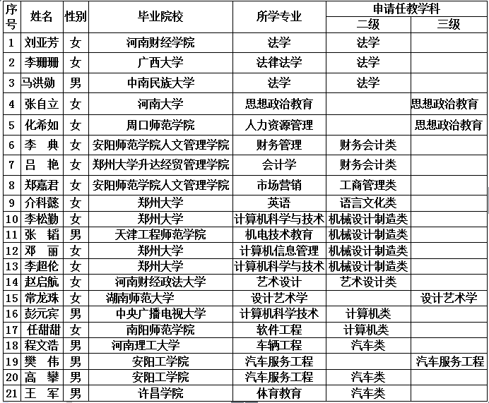 2015年我院申请高等学校教师资格免试人员情况公示如下: