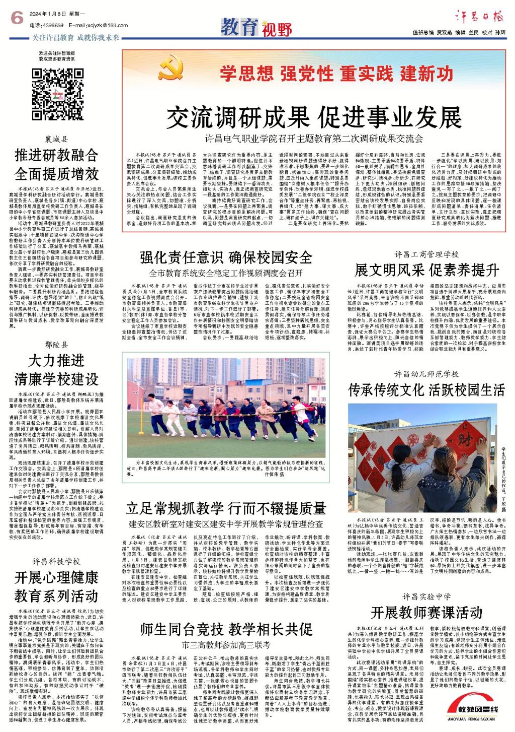 【许昌日报】交流调研成果 促进事业发展 许昌电气职业学院召开主题教育第二次调研成果交流会