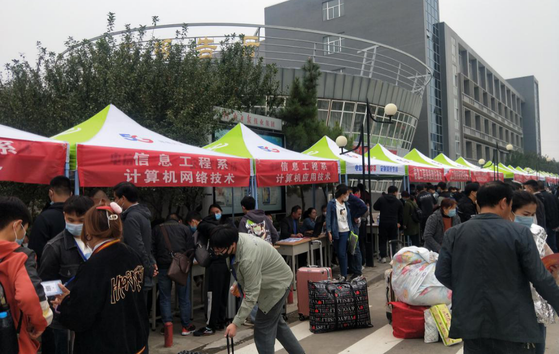 2020年10月10日早晨,信息工程系迎接新生工作正式拉开帷幕。虽然天公不作美,连绵的阴雨天气给报到的新生以及陪同的家长带来了一些麻烦,但是由于迎新工作准备充分、组织得力,迎新现场仍然一片祥和,迎新工作进行得井然有序。