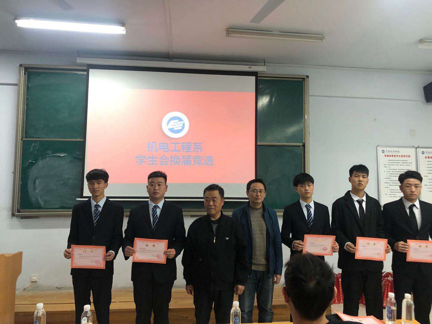 会上,学生会指导老师程文浩宣读了关于第八届机电工程系学生会干部任命的公告。随后,第八届学生会主席团新任主席殷家祥上台作了就职报告,并带领新一届学生会干部进行了工作宣誓。机电系分别为学生会干部颁发了聘书。