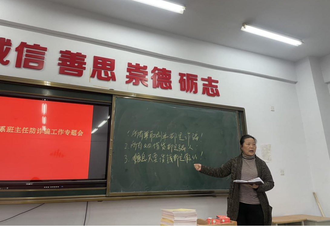 会议最后,蕫淑红主任表示,各位辅导员务必要教育学生,不要有“贪图便宜”、“一夜暴富”、“天上掉馅饼”的心理;注意保护个人资料信息,不可随意注册、填写自己的身份、手机号码、银行卡号等私人信息;在做好自身防范的同时,积极向周围的亲人、朋友做好宣传;发现电信诈骗违法犯罪行为要及时报警;如果掉入不法份子所设络的陷阱,要及时采取措施,尽量减少损失;发现上当受骗不要有侥幸心理,应当迅速保存涉案证据,并及时报案。