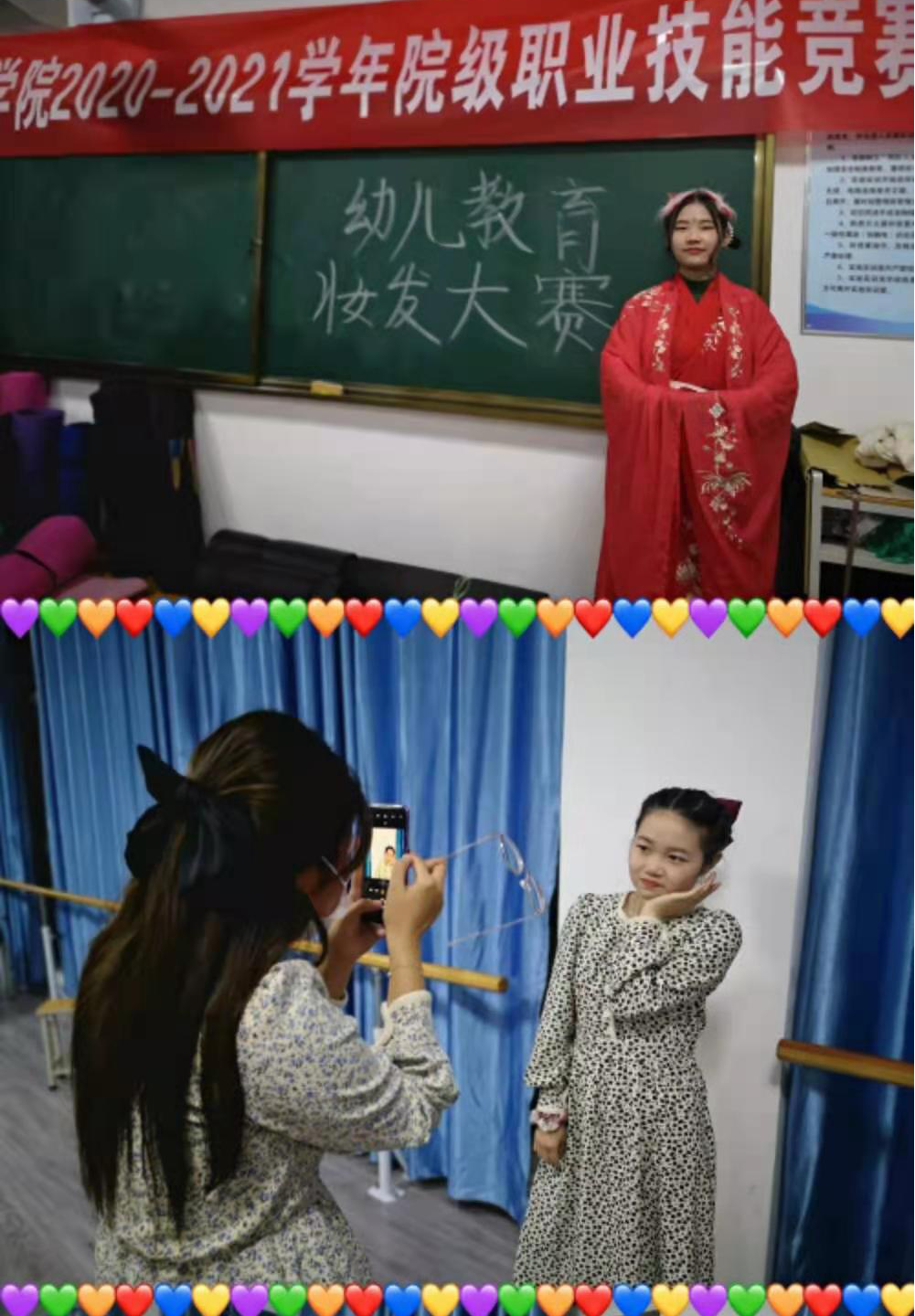 为提高学生的艺术修养和职业技能,展现学生的青春风采,丰富校园生活,艺术系19级幼儿教育班于12月10日下午在舞蹈教室举办了以‘“妆”饰自己 点亮未来'为主题的妆发比赛。