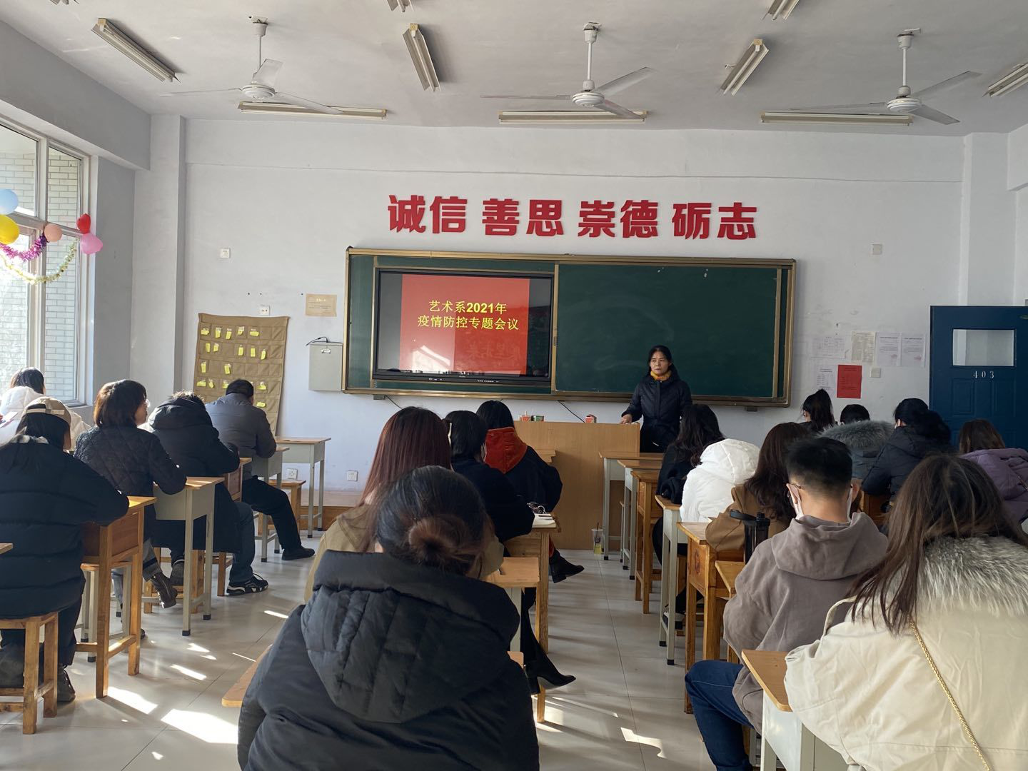 根据学院疫情防控工作部署,确保寒假期间疫情防控工作有序开展, 1月14日艺术系召开2021年疫情防控专题会议。艺术系负责人阎瑾瑜、董淑红主持会议,全体专兼职教师、合作办学单位负责人及辅导员、班主任参会。