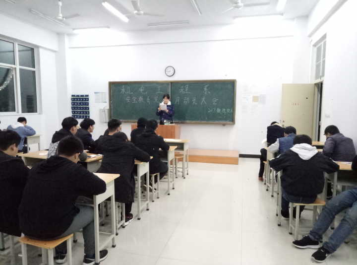 为进一步加强机电工程系安全教育工作,增强师生的安全防范意识,提高师生安全自救自护能力,保障师生的生命财产安全,确保校园的安全稳定和谐,机电工程积极响应学院活动要求,自2018年11月5日起开展了一系列安全教育宣传月活动。