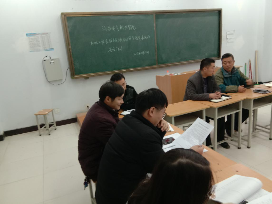 针对安全教育和检查过程中发现的问题,11月25日晚,根据“安全教育宣传月”活动内容,机电系专门召开辅导员(班主任)工作会议,强化全系辅导员(班主任)岗位责任心,要求务必全力做好安全教育工作。会后全系辅导员(班主任)积极签署《辅导员(班主任)安全教育承诺书》,并表示今后在班级管理中尽职尽责,做好我院学生安全教育和监督、防范工作。