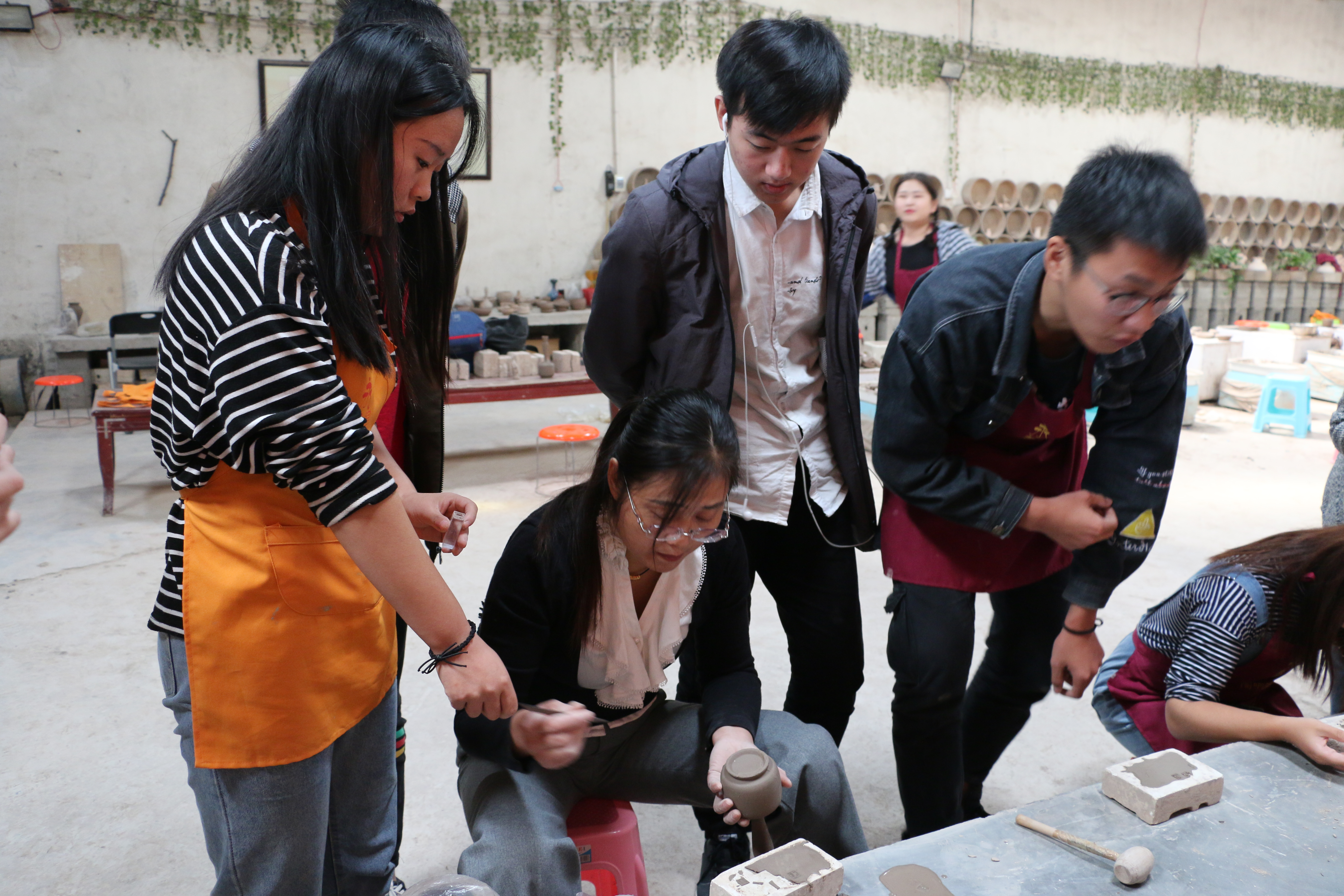 本次写生对象选择了拥有悠久历史文化的神垕钧瓷。在神垕镇永春陶瓷厂,同学们参观了钧瓷的整个制作流程,了解了钧瓷制作工艺,在钧瓷厂高级技师的指导下,同学们学习了拉胚、灌浆、手塑等不同的钧瓷制作工艺。学习过程中,同学们见识到了陶瓷厂技师高超的拉胚、修胚技能和专心、专注、专业的艺术造诣,更认识到了工匠精神对于创作一件精美工艺品的重要性。