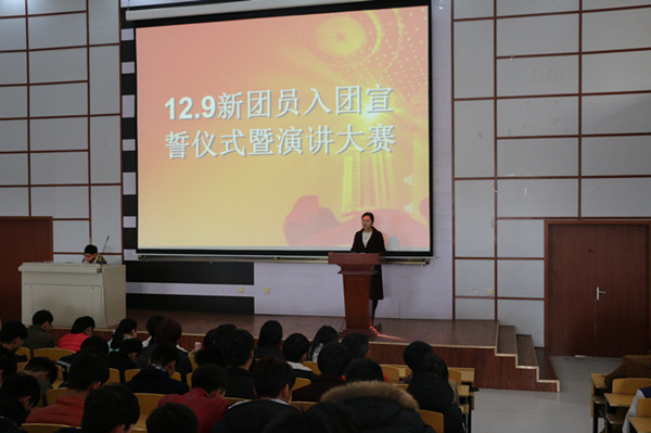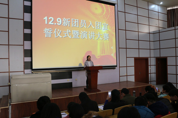 12月7日下午,院团委在阶梯教室举行了“纪念12•9新团员入团宣誓仪式暨演讲大赛”。参加此次活动的有院团委杨红培书记、丁姝老师、各系团总支负责人及新团员300余人。
