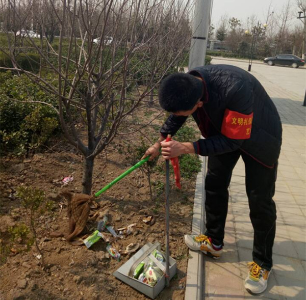 艺术系团总支刘潵潵老师组织系学生会成员及各班班委提前作好活动的任务分工, 并带领同学们在校门口、校前广场、教学楼、宿舍、餐厅等区域开展义务劳动,把地面上的垃圾收集起来放置垃圾桶内,并对随地吐痰、随手扔垃圾、校园中抽烟的行为进行耐心的劝导和讲解。