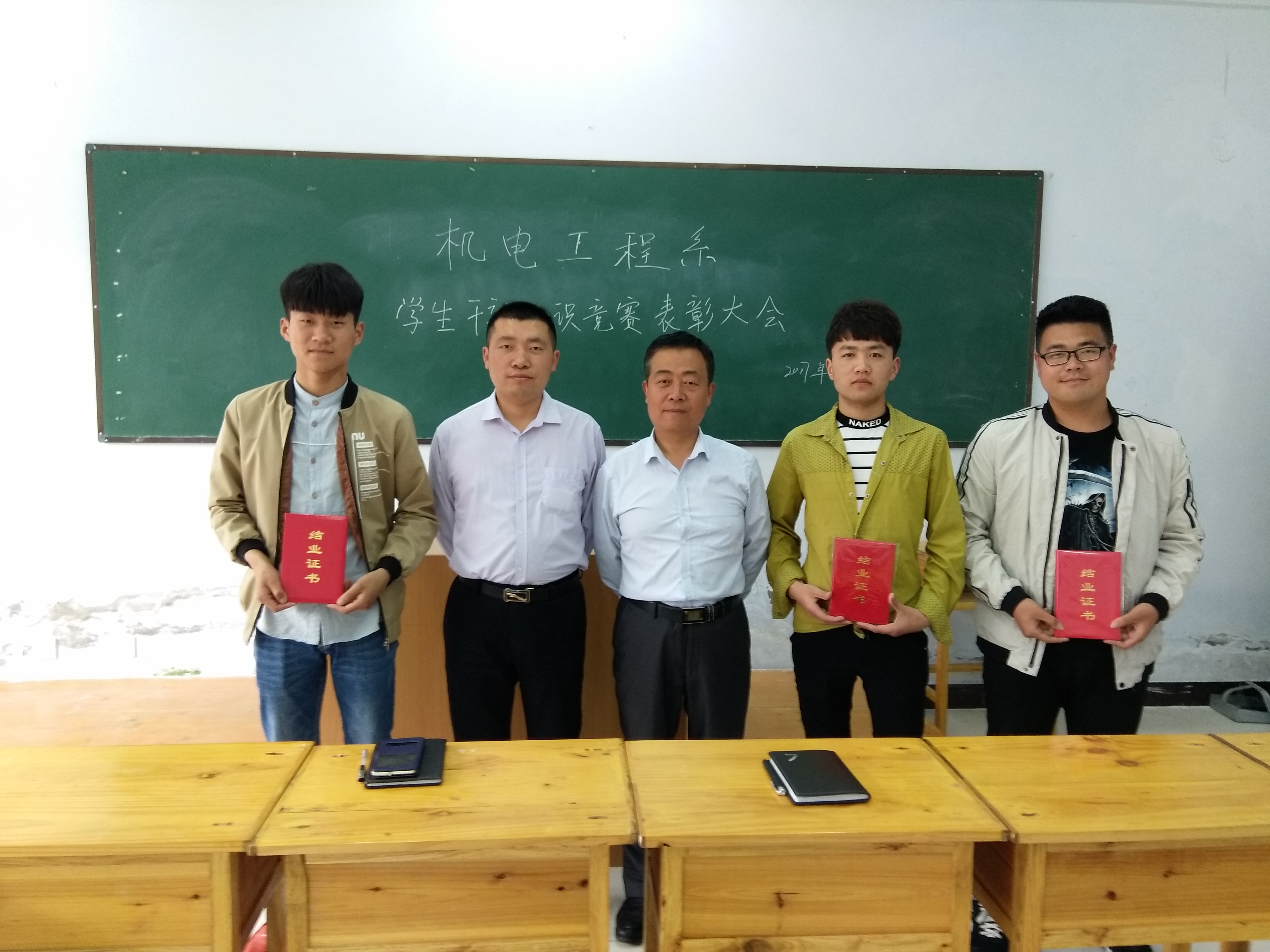 本次培训,共有159名学生干部通过考核。考核优秀的23名学生干部分别参加了“班长杯”、“学生干部杯”、“寝室长杯”管理知识竞赛。比赛现场更像是一场经验交流会,选手们将自己班级先进的管理方法及运行模式、在学生管理中的感受与体会以及班级、寝室的文化建设等等都毫无保留的贡献出来,与大家分享。经过评委认真评选,在2017年5月8日,机电系为取得“班长杯”班级管理知识竞赛冠军荣誉的14汽车检测与维修二班的班长张怡伟、取得“学生干部杯”管理知识竞赛冠军的15机电一体化班的纪律委员刘冰伟和获得“寝室长杯”管理知识竞赛一等奖的D117寝室长张家鑫及其他获奖学生颁发了奖品。
