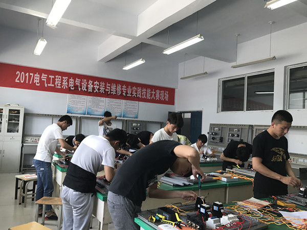 为展现学生的才华与技能,激发学生的学习兴趣,同时为明年的国赛、省赛选拔优秀选手,2017年5月24日电气工程系在实训楼举办了第三届学生技能大赛。教务处负责人潘俊峰莅临比赛现场参观指导。在院、系领导的关心与支持下,在参赛师生的共同努力下,此次活动取得了圆满成功。
