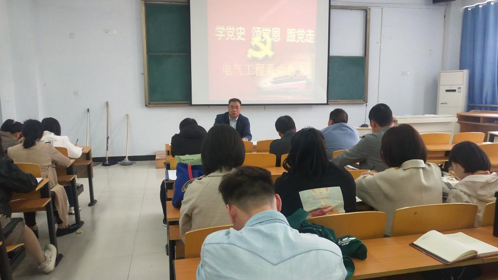 为迎接中国共产党成立100周年,深情回顾党的奋斗历史,热情讴歌党的光辉业绩。4月26日,电气工程系党总支在教学楼A112室开展“学党史、颂党恩、跟党走”唱红歌活动,系部全体党员及普通教师参加,朱金伟主任主持。