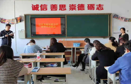为做好2021年秋季学期开学迎新以及新生入学管理工作,增强班主任工作能力,提高班主任整体素质,进一步增强班级管理工作的针对性和实效性,提高学校德育工作和班级管理水平。艺术系于10月12日上午在A教学楼402召开了新学期新生班主任、辅导员迎新会。会议由艺术系负责人阎瑾瑜与张世浩老师主持召开,艺术系全员新生班主任及辅导员参加会议。
