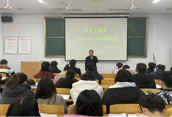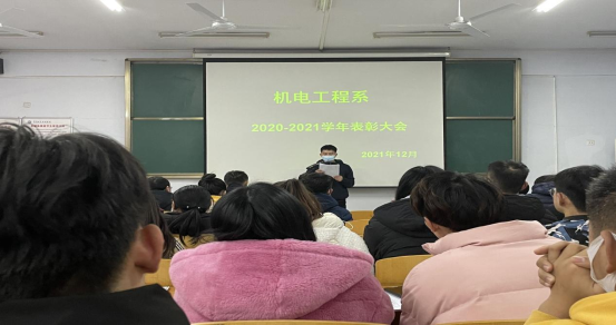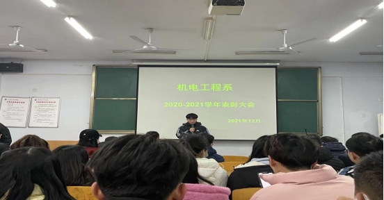 机电工程系一直重视学生的思想引导工作,此次表彰大会旨在树立典型,引领新生树立争优创先的观念,同时也希望受表彰的学生能够戒骄戒躁,做好表率,引领21级新生迈向更高的台阶,在我院不断发展的进程中增砖添瓦。