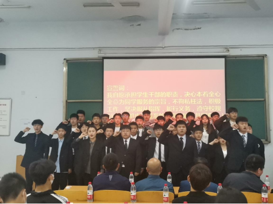 颁发聘书后,第十届学管会主席李志博做了就职报告,对第十届学管会的建设提出了五点发展规划,并带领第十届主席团、部长、副部长进行了庄重的宣誓。
