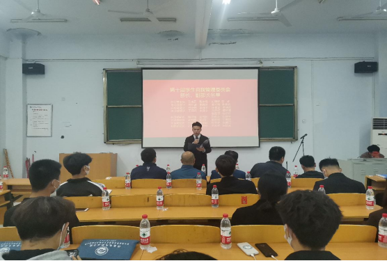 就职仪式上,第九届学管会主席沈志超同学对任职期间的工作做了总结,并对如何做好学生干部发表了自己的想法和意见。