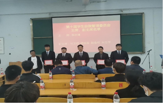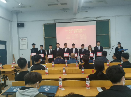 大会上,学管会换届委员会组长刘锦辉宣读了《机电工程系第十届学管会主席团任命通知》,系学管会指导老师程文浩为第十届学管会主席团成员颁发了聘任证书。第十届学管会副主席樊淼淼宣读了《机电工程系第十届学管会部长、副部长任命通知》,第十届主席团为学管会部长、副部长颁发了聘任证书。