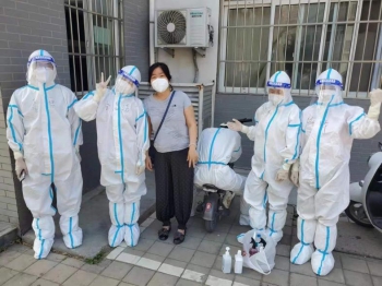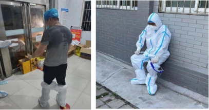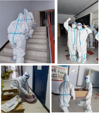 成教部的同志们、设备处的张韬老师和人事处的杨柳月老师也都是无怨无悔,投身到G楼的各项工作当中,令人敬佩。特别值得一提的是,成教部的王宏杰和李清红老师自身患有高血压、高血糖等疾病,但在这关键时刻没有丝毫的犹豫,立刻投身其中,主动承担起搬餐、运餐、分餐这个“硬活”。还有朱群峰、彭元斌两位帅哥老师,经常看到他们脱掉防护服后衣服湿透、汗流浃背的样子,着实让人感动。