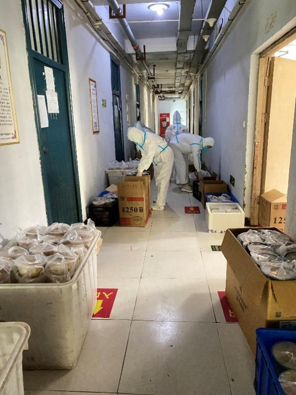 5月3日,疫情突发,按上级部门要求,整个校园采取封控管理,学生活动以宿舍为最小单位做到足不出寝,核酸上门做,饭菜送到手。面对这种突发状况,学院召集全体教职工返校担任志愿者。