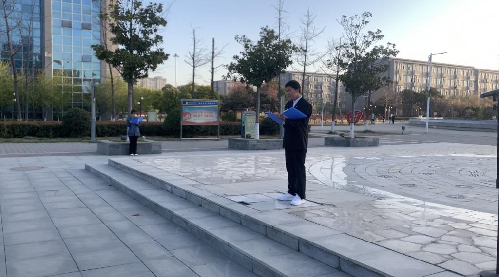 授旗结束后,由22级电力系统自动化五班学生代表靳钇进行发言,他号召学生能从本次的活动中学习到雷锋精神,发扬不怕苦,不怕累,以及全心全意为人民服务的雷锋精神。
