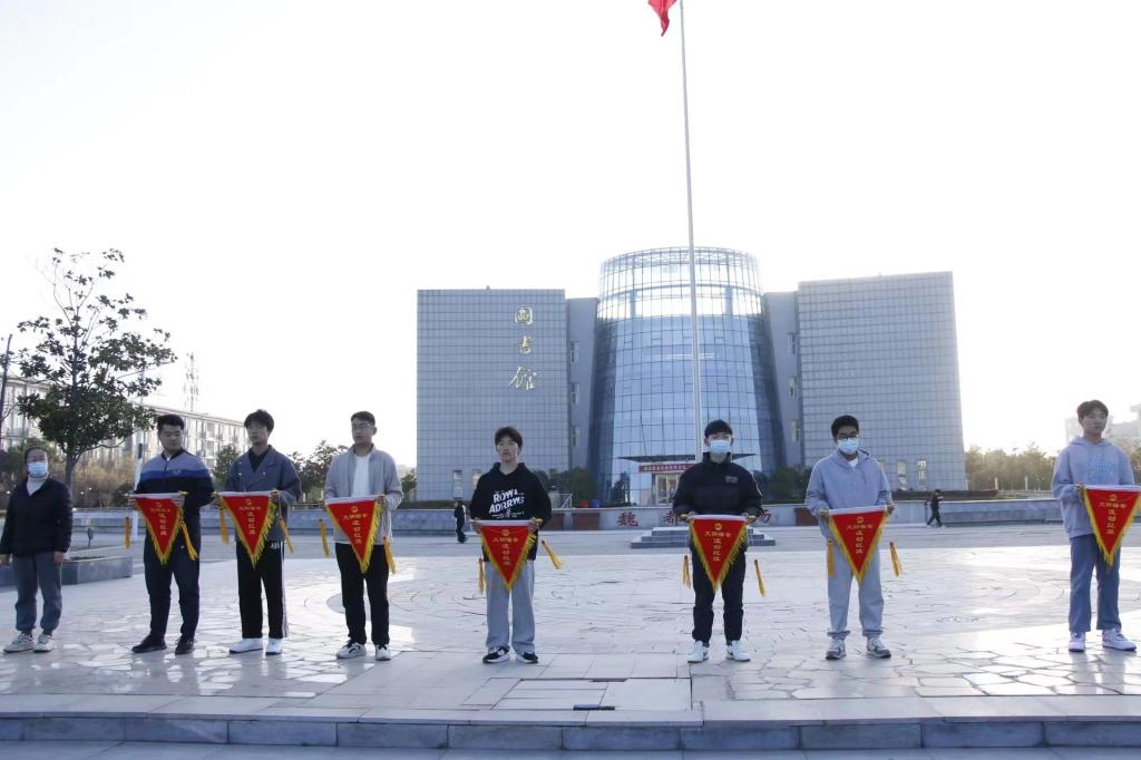 升旗完毕后,主持人上台宣读上周优秀班级及优秀宿舍名单,系部相关负责人为优秀宿舍和班级代表颁发流动红旗。
